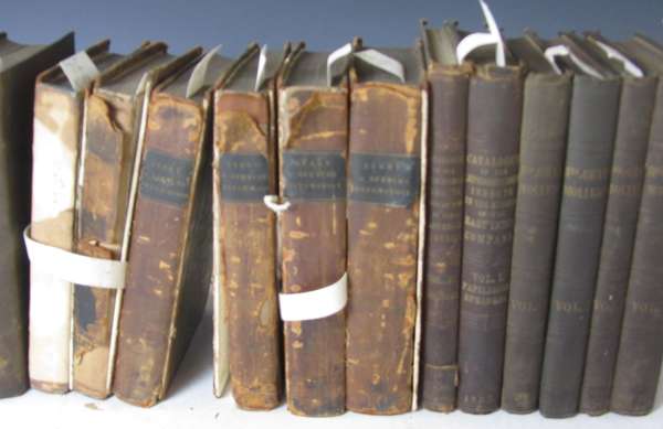 An introduction to entomology. London, 1822. 2 volumes only, 8vo, 5 hand-coloured plates, library stamps, half calf, worn, covers detached; Kirby, William An introduction to entomology. London, 1816-26. 4 volumes, 8vo, portrait and 30 plates, contemporary half calf, worn, several covers detached; Gray, M.E.Figures of molluscous animals. London, 1842-50. 4 volumes, 8vo, engraved plates, original cloth, spotting; Horsfield, T. & F. Moore A catalogue of lepidopterous insects in the museum of the Hon. East-India Company. 1857-59. 2 volumes, 8vo, engraved plates, original cloth, spotting, Haworth, A.H. Lepidoptera Britannica. 1803, 8vo, cloth; and a quantity of books on natural history (quantity)