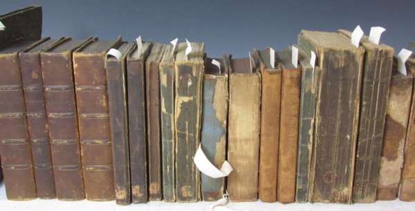 Mineralogisches Taschenbuch für das Jahr 1818, Parts 1-2; das Jahr 1820. Parts 1-2; das Jahr 1821; das Jahr 1822. 2 volumes, original boards; das Jahr 1823. Parts 1-4, das Jahr 1824. Part 1 only; various bindings, worn; Kneifl, Reginald. Das Mineralreich. Wien, 1811. 2 volumes, 8vo, half calf, worn; Hoffmann, C.A.A. Handbuch der Mineralogie. Freiberg, 1811-17. 4 volumes, 8vo, half tan morocco, some spotting, slightly rubbed; Hoffmann, C.A.A. Handbuch der Mineralogie. Freiberg, 1811-12. Volumes 1-2 only, wrappers, uncut; Blank, Joseph B. Handbuch der mineralogie. Würzburg, 1810. 8vo, frontispiece, half calf, worn, covers detached; Leonhard, K.C. von Bedeutung und Stand der Mineralogie. Frankfurt, 1816. 4to, half calf, worn; Zappe, J.R. Mineralogisches Hand-Lexicon. Vienna, 1817. 3 volumes, 8vo, interleaved copy, calf, worn; ; all spotted and with library stamps; sold not subject to return (24 volumes)