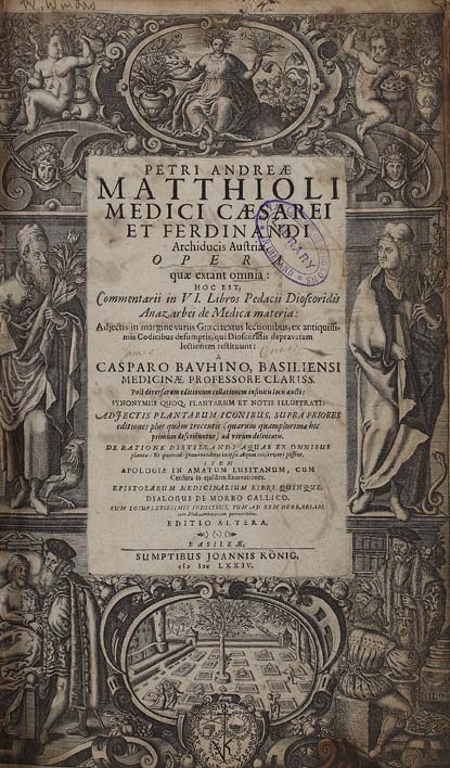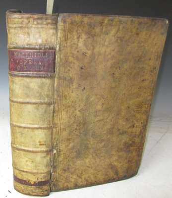 Opera quae extant omnia. Basle: Joannis König, 1674. Folio, [120], 1027, [22], 3-236, [6]; 2 parts in one volume, engraved title, full-page engraved portrait in text, numerous woodcuts, contemporary blindstamped vellum, some spotting, occasional browning, lacking B3 and M6, binding soiled, joint split, library stamp on title