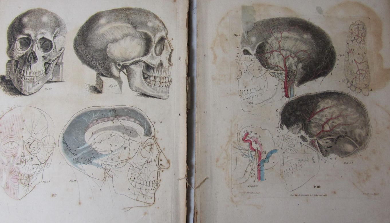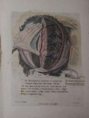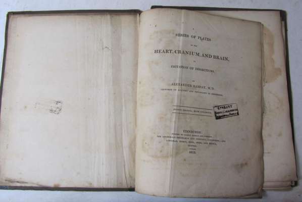A series of plates of the heart, cranium and brain, in imitation of dissections. Edinburgh: A. Constable, 1813. Second edition, 4to, 15 coloured plates, half calf, spotting, some offsetting and soiling, library stamps to title & most plates, worn, covers detached