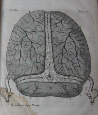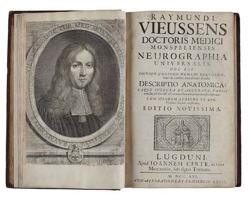 Neurographia universalis, hoc est, omnium corporis humani nervorum. Lyons: J. Certe, 1716. Folio, [16], 252, [2]; engraved portrait frontispiece, half-title, 30 numbered engravings consisting of 8 numbered engravings in the text and 22 engraved plates, some folding, one double-page, errata leaf at end, contemporary calf, some waterstaining, discolouration to a few plates, rebacked, corners rubbed