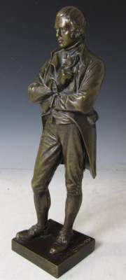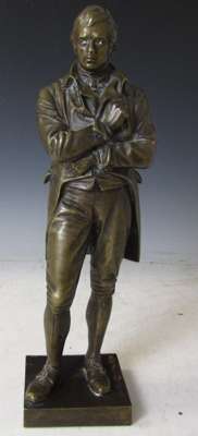 The standing figure of the poet, arms folded and gazing downward, on square base, bronze, 36cm., signed on base "Geo. A. Lawson. 1891"