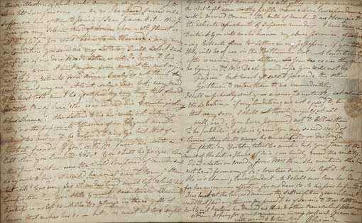 Note: A fascinating letter from Agnes M'Lehose ("Clarinda"), alternately entreating and demanding the return of her love letters to Burns which were then in the possession of Dr. Maxwell, following Burns's death on 21 July 1796. Apparently unpublished.