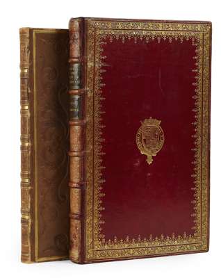 The genealogie of the most noble and ancient House of Drummond... collected in the year 1681. Manuscript copy, [early 18th century], 352pp., folio, eighteenth century red morocco gilt, with arms of the Duke of Sutherland on sides, uncut, neat repair to head and foot of spine; and another copy of the same, ruled in red, folio, [c.1780], nineteenth century embossed calf, lacks title, several leaves repaired (2)