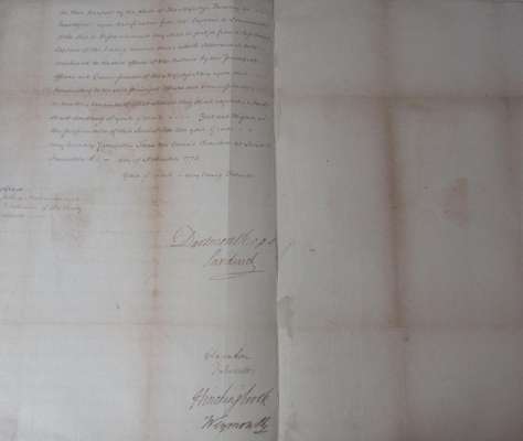 Document signed ("Sandwich") as First Lord of the Admiralty, and also by the Lord Privy Seal Lord Dartmouth & others, addressed to the Duke of Northumberland, "Custos Rotulorum" [Keeper of the Rolls], informing him that as "His Majestys [George III's] Service doth at this time require a speedy supply of Seamen and Seafaring Men, to Man His Majestys Fleet which is now Fitting out, We do... require Your Grace to call upon the Justices of the Peace of the County of Middlesex... to cause all stragling seamen who are fit to serve on board his Majesty's Ships, to be taken up", and sent to one of the naval ports for a bounty of twenty shillings per man. Manuscript, 2 pages, folio, with integral address leaf and paper seal, "from the Council Chamber at St. James's, 8 November 1776", silked, with some browning, but perfectly legible