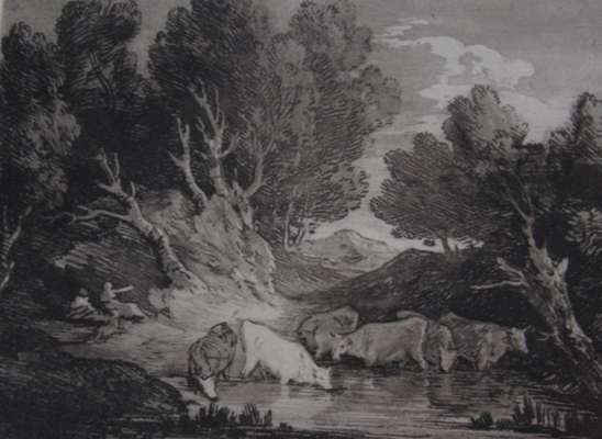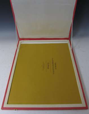 The etched and engraved prints of Thomas Gainsborough R.A. Hertfordshire: John Boydell Press, 1971. Large folio containing 11 prints of etchings by Gainsborough, original yellow card, number 26 of 175 copies, duplicate small folio of Introduction and Notes by Philip McQueen and John Hayes, contained in red cloth presentation box with clasps, one clasp broken, very slight marking to box