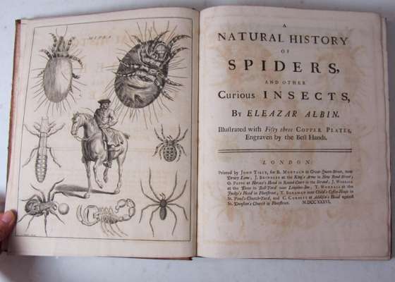 A natural history of spiders and other insects. London: printed by John Tilly for R. Montagu..., 1736. 4to., engraved frontispiece and 53 engraved plates, uncoloured, contemporary calf gilt, some rubbing to covers and spine