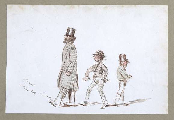 23 original pen and ink or pencil sketches by John Leech, heightened with watercolour, 16 signed, c. 13 x 10 - 15 x 22cm., pasted into a Victorian half morocco album, lettered "Scrap Book" on spine