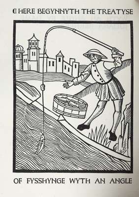Berners, Juliana, Dame A treatyse of fisshynge with an angle. London: Ashendene Press, 1903. 8vo., one of 150 copies, woodcut frontispiece, vellum gilt