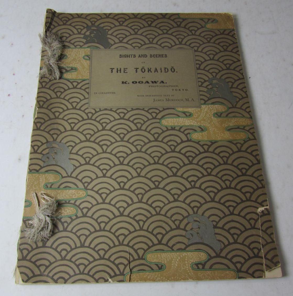 Sights and scenes on the Tokaido. [Tokyo: [N.p.], c.1900] Folio, 20 plates with collotype photographs by Ogawa, descriptive text by James Murdoch, tissue guards, original wrappers and fabric spine, later fitted peach cloth case, covers slightly torn at edges, spine fraying and wearing away