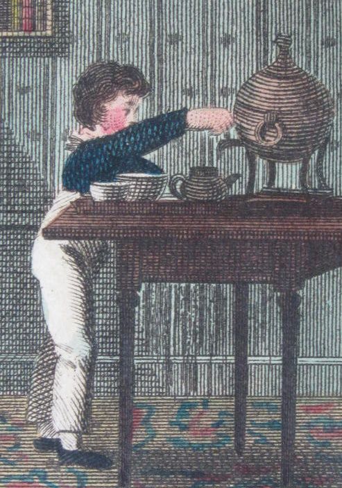 The good boy's soliloquy. London: William Darton, 1813. 16mo, 16 coloured plates, 16pp., later calf gilt, g.e.