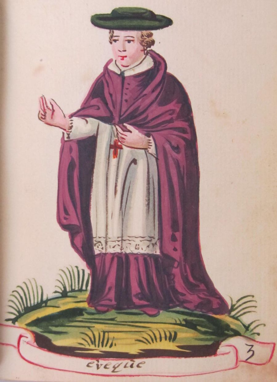 A collection of 50 original watercolour drawings depicting the attire of the Holy Orders of the Catholic Church, unsigned and undated, 16mo., mid 18th century, contemporary calf, bookplate of Sir Henry Mainwaring, covers and spine rubbed