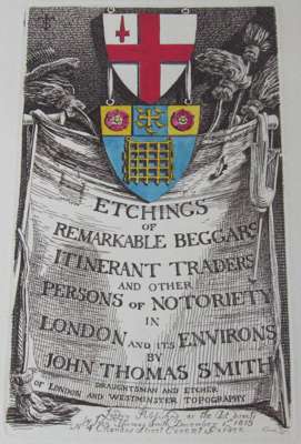 Etchings of remarkable beggars, itinerant traders and other persons of notoriety in London and its environs. London: published by the artist, 1815. Folio, in 6 original parts from publisher, hand-coloured engraved title, 48 engraved plates, original wrappers, some foxing, mostly marginal, edges dustsoiled and sometimes a little creased (6)
