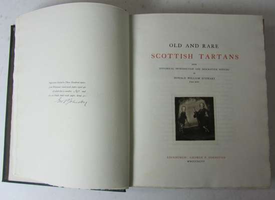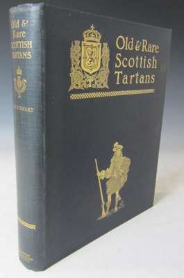 Old and rare Scottish tartans. Edinburgh: George P. Johnston, 1893. Folio, number 30 of 50 copies printed on Whatman's hand-made paper and signed by the publisher, 45 different swatches of tartan fabric mounted within plates, each accompanied by a description of its clan, original blue cloth gilt, some slight soiling to covers and fading to spine, a few leaves loose, some light offsetting onto text