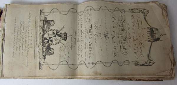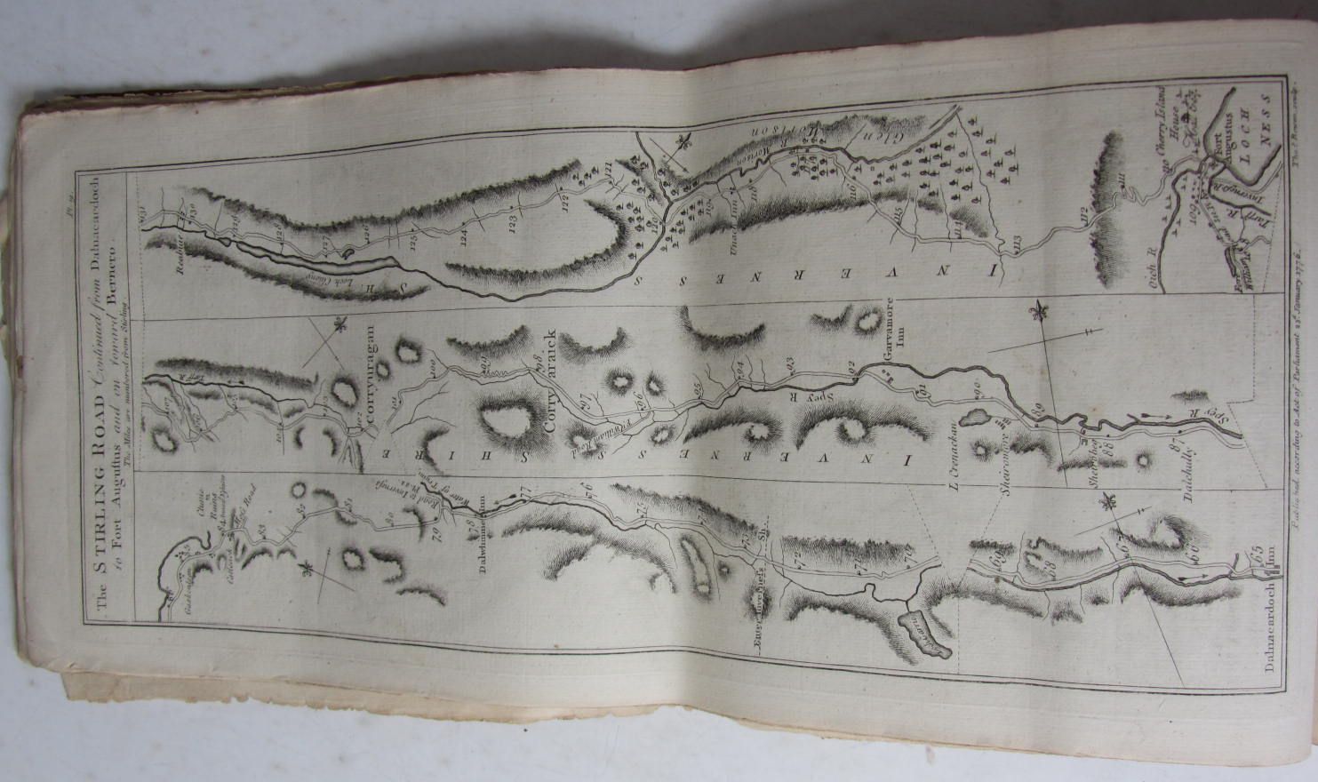 Survey and maps of the roads of North Britain or Scotland. London: by the authors, 1776. Oblong folio [53 by 23cm], engraved title, 61 maps on 31 leaves,contemporary calf, a few tears to covers, some repaired with sellotape, occasional soiling to leaves, chipping to edges of maps
