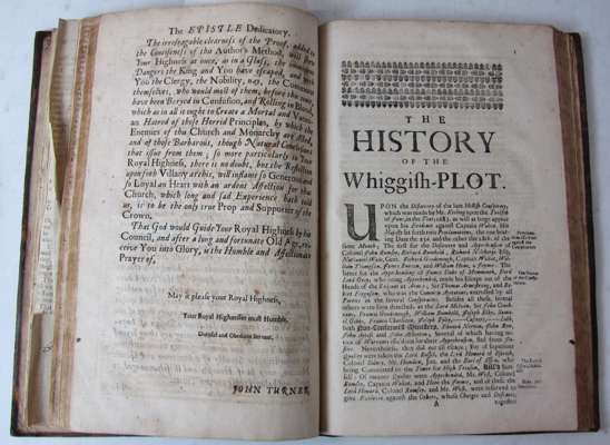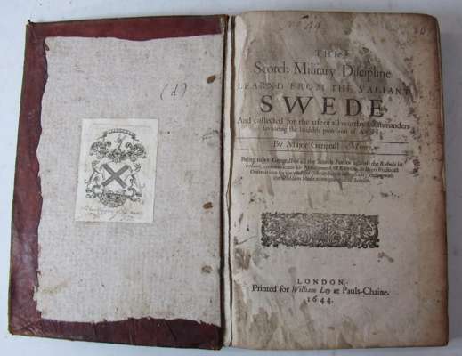 [Anon.] An account of how the Earl of Essex killed himself in the Tower of London. London: printed by the assigns of John Bell... and by Henry Hills and Thomas Newcomb, 1683. [ESTC R6078]; Charles II His majesties declaration to all loving subjects concerning the treasonable conspiracy against his sacred person and government lately discovered. London: printed by the assigns of John Bell... and by Henry Hills and Thomas Newcomb, 1683; [Anon.] The tryals of Thomas Walcot, William Hone, William Lord Russell, John Rous and William Blagg for high-treason...London: printed for Richard Royston, Benjamin Took and Charles Mearn, 1683. [ESTC R21861]; [Anon.] The arraignment of Algernon Sidney, esquire. [London: Printed for Benjamin Tooke, 1684]. [ESTC R23343]; [Anon.]The very copy of a paper delivered to the sheriffs upon the scaffold...by Algernon Sidney, Esq., [London: Printed for R[obert]. H[orn]. J[ohn]. B[aker]. and J[ohn]. R[edmayne] and...sold by Walter Davis, 1683]. [ESTC R12869]; Bernadiston, Sam, Sir The tryal and conviction of Sir Sam Bernardiston, Bart.... London: Printed for Benjamin Tooke, 1684. [ESTC R30169], two copies; The British Magazine. Or the London and Edinburgh intelligence. February 1748. 5 leaves concerning the trial of Quakers Penn and Mead; Braddon, Laurence The tryal of Laurence Braddon and Hugh Speke, Gent. [London: Printed for Benjamin Tooke, 1684] [ESTC R24641]; [Anon.] The history of the Whiggish-plot... London: Printed by T.B. to be sold by Randal Taylor, 1684, [ESTC R41849]; Hampden, JohnThe tryal and conviction of John Hambden, Esq.... London: printed for Benjamin Tooke, 1684 [ESTC R7137]; James II His majesties most gracious speech to both Houses of Parliament. London: printed by the assigns of John Bell, Henry Hills and Thomas Newcomb, 1685. [ESTC R178851]; various sizes bound in 18th century calf gilt, occasional spotting and dust soiling.; Monro, Major Generall The Scotch military discipline learned from the valiant Swede... London: Printed for William Ley, 1644. [ESTC R231118] 4to., contemporary calf, title page soiled, some rubbing to covers and spine, occasional damp staining in upper margins (2)