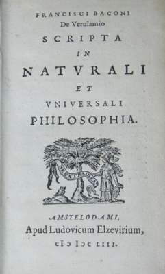 Scripta in naturali et universali philosophia. Amserdam: Ludovic Elzevir, 1653. 12mo, folding table, [bound with] [Bacon, Francis.] [Historica naturalis et experimentalis de ventis. Amsterdam: ex officina Elzeviriana, 1662]. 12mo, lacking title, 2 works in one volume, contemporary vellum
