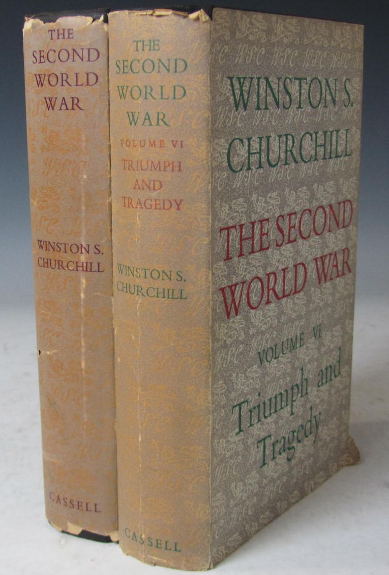 Triumph and tragedy. London: Cassell & Co., 1954. First edition, 8vo., signed by the author on free endpaper in 1955, original black cloth gilt, dustwrapper, some fading and small tears to edge of wrapper; [Idem] Their finest hour. London: Cassell & Co., 1949. 8vo., first edition, original black cloth gilt, dustwrapper, some fading and wear to corners of wrapper, covers slightly soiled (2)