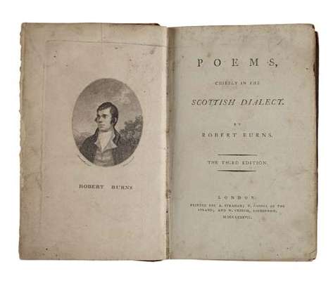 Poems, chiefly in the Scottish dialect. London: A. Strahan, T. Cadell & Edinburgh: W. Creech, 1787. Third edition [First London edition], 8vo, half-title, engraved portrait frontispiece, with "stinking" misprint on p.267, contemporary calf, portrait laid down, some spotting and soiling, chiefly to preliminary leaves, a few minor ink spots on fore-edge, rubbed, joints splitting