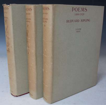 Poems, 1886-1929. London: MacMillan & Co., 1929. 4to, 3 volumes, number 344 of 525 copies, signed by the author, etched frontispiece portrait in volume 1, by Francis Dodd, signed, original red morocco gilt, t.e.g., dust jackets, some fading to dust jackets (3)