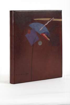 Alberti, Leon Battista On painting. London: printed for Susan Allix, 1999. 4to., coloured frontispiece and other intaglio prints and illustrations, 20 coloured, 7 monochrome and one in blind, in a mixture of aquatint, drypoint etching with the additional use of carborundum, watercolour and pencil, by Susan Allix, each printed separately, number 22 of 22 copies printed and signed by the artist, bound by Allix in full terracotta leather, tinted with darker dye in areas, abstract blue and purple onlays with black tooling and leathering, contained in a decorated cloth box lined with suede