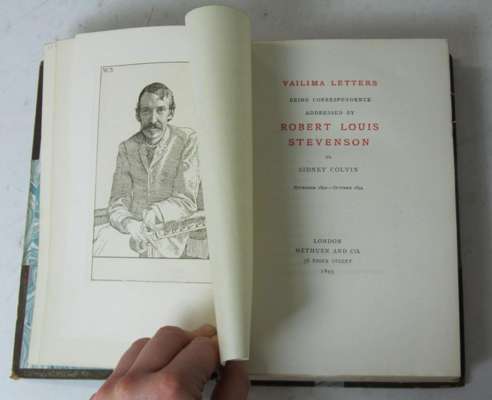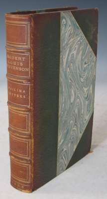 Vailima letters... London: Methuen and Co., 1895; Colvin, Sidney The letters of Robert Louis Stevenson. London: Methuen and Co., 1900. 2 volumes; Balfour, Graham The life of Robert Louis Stevenson. London: Methuen and Co., 1901. 2 volumes; Stevenson, Robert Louis Works. London: Cassell and Company, 1906-1907. 19 volumes (of 20 - lacking volume 8); Uniform 8vo., some portraits, frontispieces and maps, green half morocco, covers faded and damp stained, spines rubbed, interiors clean
