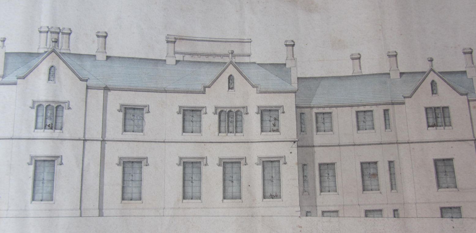 Architectural plans for Cultoquhey House, 1823, designed by Sir Robert Smirke. 19 sheets including a plan for the hill farm, some with annotations and occasional colour, paper worn with some tears, dust soiling and slight foxing; and Three account books relating to Cultoquhey House between 1814 and 1833, including the wages book for the construction of the building (1826-1831); and 1703 Charter signed by Queen Anne granting Cultoquhey to Mungo Maxton and his heirs, 2 sheets with some dust staining and foxing with some tears to central folds; and 17 other letters and financial statements relating to Cultoquhey from between 1810 and 1833, including a George III parchment issuing a crown pension to Marion Maxton, 1804 [quantity]