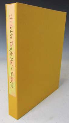 The golden temple mail to Bharatpur. London: Susan Allix, 2001. 4to., 6 original etchings based on paintings by Allix using paint made from Pakistani Udaipur stones, number 6 of 25 copies, signed by Allix with a letter to Lord Perth about the book loosely inserted, bound in red, yellow and rose leather with additional painting in pink, red, black and gold and decorative yellow and magenta onlayed pieces of leather, presented in suede lined yellow box