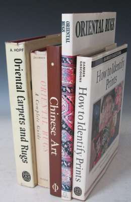 A collection of modern art and antiques reference works, to include Edwards, Cecil A. The Persian carpet. London: Gerald Duckworth & Co., 1960. 4to, original cloth gilt; Schurmann, Ulrich Caucasian rugs. London, George Allan & Unwin, [[N.d.]. 4to, original cloth, dustwrapper; Hinckley, F.Lewis A directory of antique furniture. New York: Bonanza Books, 1953. 4to, original boards, dustwrapper with some slight tears; Service, Alastair Edwardian interiors. London: Barrie & Jenkins, 1982. 4to, original cloth, dustwrapper; Long and Cumming The Scottish colourists, 1900-1930. Edinburgh: Mainstream Publishing, 2001. 4to, original cloth, dustwrapper; Gascoigne, Bamber How to identify prints. London: Thames and Hudson, 1986. 4to, original cloth, dustwrapper; Lion-Goldschmidt, Daisy Chinese art. Oxford: Phaidon, 1980. 4to, original cloth , dustwrapper; Macintosh, Duncan Chinese blue and white porcelain. London: David & Charles, 1980. 4to, original cloth, dustwrapper; Thornton, Peter Authentic decor. London: Weidenfeld and Nicolson, 1984. 4to, original cloth, dustwrapper; and 37 others