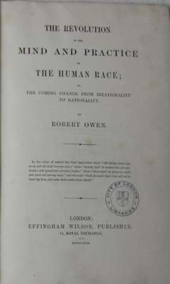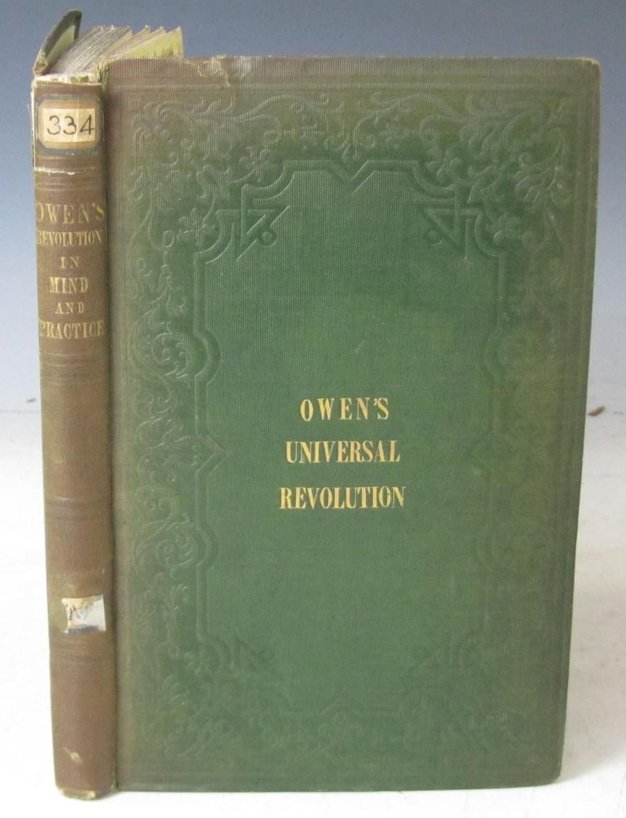 The revolution in the mind and practice of the human race. London: Effingham Wilson, 1849. First edition, 8vo, inscribed "with the author's respects" on front free endpaper, original green cloth gilt, backstrip faded with remains of library label, repairs to front free endpaper, ex-library copy with several ink stamps to title, early leaves and final page