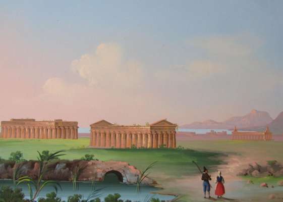 Italian gouache paintings - Ruins of Paestum and Ischia & Procita