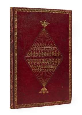 Groups of flowers… London: printed for Longman, Hurst, Rees, Orme, and Brown, 1817. Folio, 11 plates, 5 of which are hand coloured (colour plate of moss rose lacking), decoratively bound in red morocco gilt with central gilt and blind tooled diamond and butterfly design on covers and Greek key and tulip borders, edges gilt, very light foxing to endpapers and first few leaves, some slight rubbing and minor soiling to covers and spine