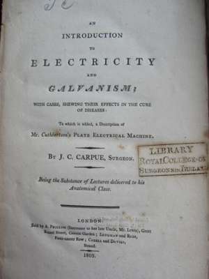 An introduction to electricity and galvanism. London: A. Phillips, 1803. First edition, 8vo, [viii, 112], 3 folding plates, original boards, uncut, slightly spotted, library stamp on title, board detached; Cooper, Astley Paston Observations on the structure and diseases of the testis. London: Longman, 1830. 4to, 24 hand-coloured lithographed plates, several folding, contemporary half calf, several library stamps, title repaired on verso, some spotting and dust-soiling, worn, lacks spine, covers detached; Cooper, Bransby B. A treatise on ligaments. London: Longman, &c., 1827. Second edition, 4to, 13 engraved plates, spotting and offsetting, library stamp to title, contemporary half calf, worn, covers detached; Laennec, R.T.H. A treatise on the diseases of the chest. London: T. & G. Underwood, 1827. Second edition, lithographed portrait & 8 plates, contemporary half calf, library stamp to title and frontispiece, some spotting, hinge broken, worn (4)