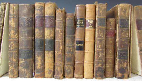 A new essay on muscular motion. London, 1733. 4to, original boards, pp.63-4 soiled and loose, dampstained & soiled; Hendy, James A treatise on the glandular disease of Barbadoes. London, 1784. 8vo, engraved frontispiece & folding plate, half calf, cover detached; Leake, John A dissertation on the properties and efficacy of the Lisbon diet-drink. London, [c.1767]. 1 mezzotint plate; Dawson, Thomas Cases in the acute rheumatism and the gout. London, 1775; Smith, Hugh A treatise on the use and abuse of minerall waters. London, [c.1780?]; Rowley, William An essay on the cure of ulcerated legs. 1771. 4 works in one volume, calf, lacks upper board; Heister, Lorenz A compendium of the practice of physic. London, 1757. 8vo, calf, board detached; Haygarth, John A sketch of a plan to exterminate the casual small-pox from Great Britain. London, 1793. 2 volumes, 8vo, board detached; Greenfield, John A treatise of the safe, internal use of Cantharides in the practice of physick. London, 1706. 8vo, boards detached; Hewson, William Experimental Inquiries; part the First. London, 1772. 8vo, half-title, calf, rebacked; Home, Francis Medical facts and experiments. London, 1759. 8vo, calf, rebacked; Haller, Dr. Medical, chirurgical and anatomical cases and experiments communicated by Dr Haller. London, 1757. 8vo, half-title, 4 plates on 2 folding sheets, calf, covers detached; Monro, Alexander The anatomy of the human bones, nerves and lacteal sac and duct. Edinburgh, 1763. 12mo, calf; Gilchrist, Ebenezer The use of sea voyages in medicine. London, 1771. 8vo, half-title, boards detached; Pearson, John Principles of surgery... Part the First. London, 1788. Volume 1 only, calf, cover detached; Peart, E. The generation of animal heat. Gainsbrough, 1788. 8vo, original boards, uncut; Pemberton, Henry A course of physiology. 1773. 8vo, calf, boards detached; Pearson, John Practical observations on cancerous complaints. London, 1793. 8vo, calf, boards detached; Paxton, Peter A directory physico-medical. London, 1707. 8vo, calf, lacks part of advertisement leaf at end; Paxton, P. Specimen physico-medicum. London, 1711. 8vo, calf, board detached; Parsons, James Human physiognomy explain'd. London, 1747. 4to, 9 engraved plates (erratically numbered), half calf, boards detached; Girdlestone, Thomas A case of diabetes. Yarmouth, 1799. 8vo, disbound, soiled Gibson, Thomas The anatomy of humane bodies epitomized. London, 1716. 8vo, calf, excision at head of title affecting one letter, and at head of A3 affecting several words, boards detached; Parsons, James A description of the human urinary bladder. London, 1742. 8vo, 7 folding plates, boards detached, a few leaves loose; [Anonymous] The London practice of physic. London, 1793. 8vo, Lommius, J. A treatise of continual fevers. London, 1732. 8vo, head of title cropped without loss of text, calf, covers detached; Gooch, Benjamin The chirurgical works. London, 1792. 3 volumes, 8vo, folding plates, calf and half calf, two boards detached; Langrish, Browne The modern theory and practice of physic. London, 1738. Second edition, 8vo, inscription and 3 different bookplates of Robert Scott M.D.; Lieber, Ferdinand Praelectiones anatomicae. Edinburgh, 1790. 8vo, calf, board detached; Kirkpatrick, James The analysis of inoculation. London, 1754. 8vo, calf, title and boards detached; Latta, James A practical system of surgery. Edinburgh, 1795. 3 volumes, 8vo, engraved folding plates, half calf, worn; Latta, John A practical system of surgery. Edinburgh, 1795. 3 volumes, 8vo, engraved folding plates, half calf, volume 1 bound without plates, covers detached; Lind, James A treatise on the putrid and remitting marsh fever, which raged at Bengal. Edinburgh, 1776. 12mo, lacks wrappers; sold not subject to return (36)