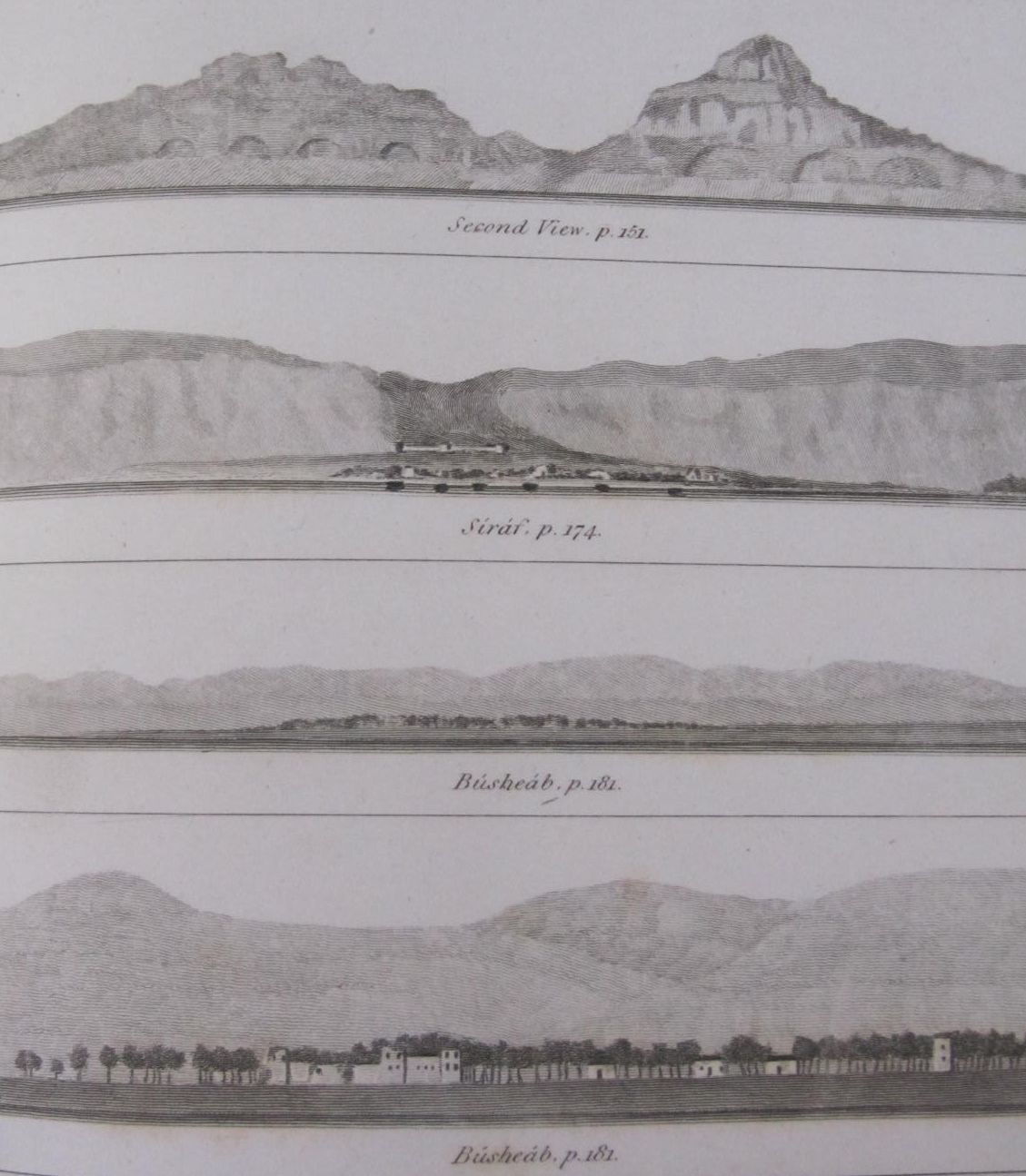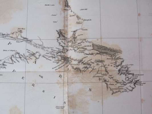 Travels in various countries of the East, more particularly Persia. London: Rodwell & Martin, 1819-23. 82 engraved plates, 4 folding maps, heavy spotting and offsetting, lacks all boards, a few leaves detached, library stamp on titles