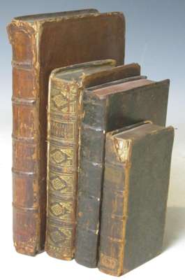 Nouveaux elemens des sections coniques. Paris: André Pralard, 1679. 12mo, contemporary calf, lower cover detached, covers and spine rubbed, upper joint split, lacking last few pages; Euclid Elementorum. London: D. Pauli & J. Dunmore, 1678. 8vo [Wing E3394] [ESTC R3052 ]; Bound with Barrow, Isaac Lectio reverendi et doctissimi viri. London: D. Pauli & J. Dunmore, 1678. 8vo, contemporary calf, covers and spine rubbed, hinges weak, some slight foxing and darkening [Wing B936] [ESTC R8831]; Euclid Sex primi elementorum geometricorum. Canterbury: Edward Story, 1665. 12mo, contemporary calf, spine and covers a little rubbed and chipped, a little darkening [Wing E3406] [ESTC R5894]; [Idem] Elements, the whole fifteen books... London: Daniel Midwinter, Aaron Ward, Arthur Bettesworth, Charles Hitch, Thomas Page and William Mount, 1732. 8vo, portrait, contemporary calf, spine and edges of covers rubbed, spine a little chipped, hinges weak; Thomas-Stanford, Charles Early editions of Euclid's elements. San Francisco: Alan Wofsy Fine Arts, 1977. 4to, 13 pages of plates, original grey cloth gilt; Plutarch The lives of the noble Grecians and Romans... Stratford-upon-Avon: Shakespeare Head Press, 1928. 8vo, 8 volumes, number 322 of 500 copies produced, original black cloth gilt, t.e.g., others uncut, endpapers slightly darkened, very occasional light foxing predominantly to endpapers (12)