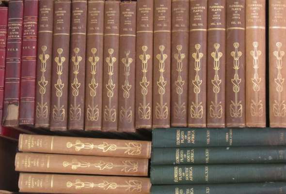 The flowering plants of South Africa [The flowering plants of Africa from volume 25 in 1945). Volumes 1-62, 1921-2011. 8vo, 62 volumes in 57 books, full run from beginning of publication up to 2011, volumes 1-13: London: L. Reeve, Cape Town: The Speciality Press of South Africa; volumes 14-26: London: L. Reeve, Pretoria: J.L. Van Schaik; volumes 27-41; N.p.: Botanical Research Institute - Department of Agricultural Technical Services; volumes 51-60: Cape Town: National Botanical Institute; volumes 61-62: Pretoria: National Biodiversity Institute, 1962 plates (1040 hand-coloured, in volumes 1-26); sold not subject to return (52)