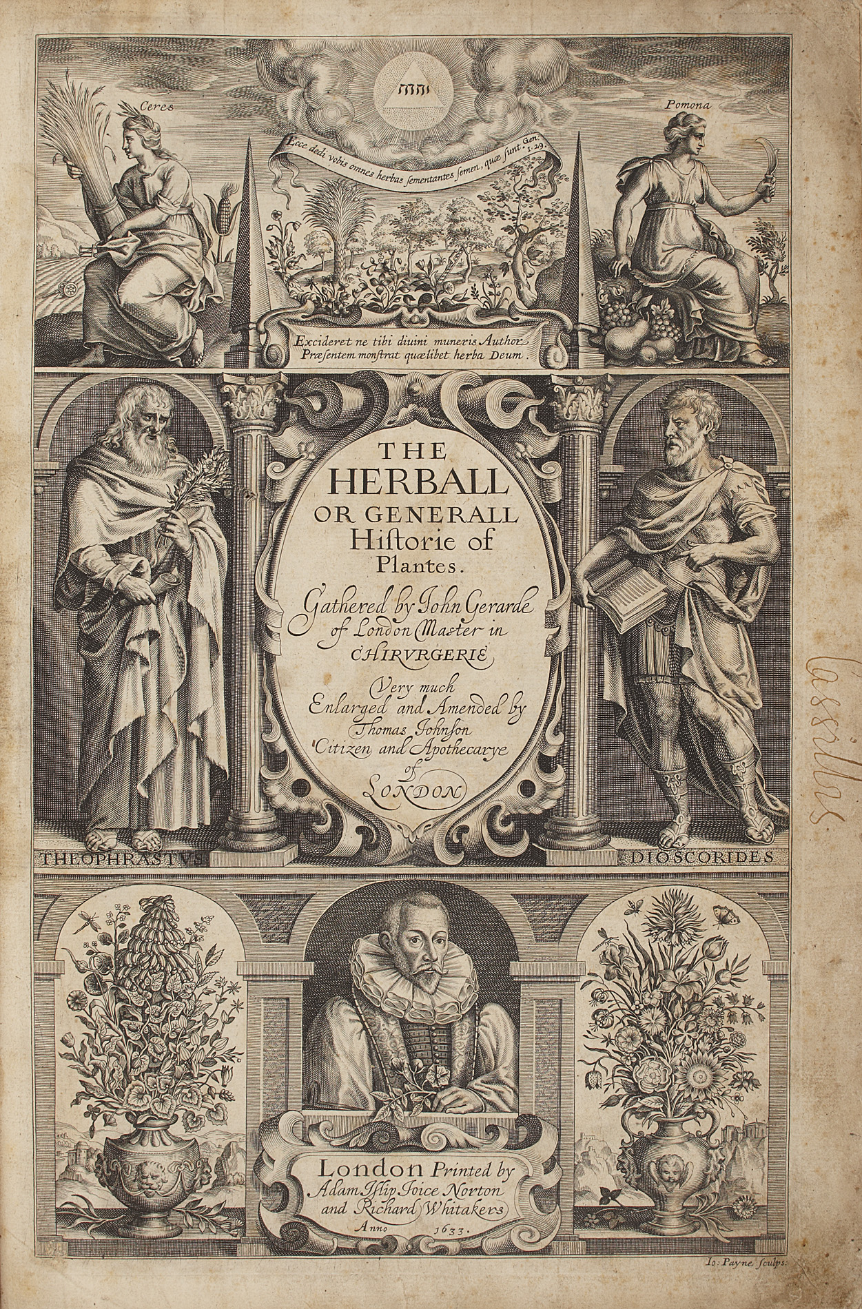 Note: Many botanical works are found to have been used for pressing flowers and botanical specimens. This copy of Gerard's Herball is one such example, containing a lathyrus specimen labelled, Grown from a seed found inside an Egyptian mummy. Although it is unlikely that this is the case, the specimen does reflect the 19th and 20th century fashion for 'mummy peas'. Unsuspecting tourists would purchase peas and seeds which were allegedly found inside an Egyptian mummy and grow plants from these. In an 1885 edition of the Gardener's Monthly and Horticulturalist , Thomas Meeham wrote:
