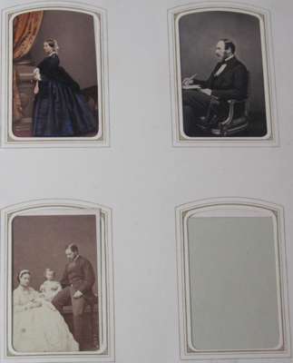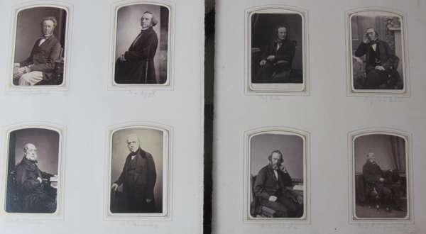 c. 251 cartes-de-visite of family and public figures including Dickens (by J. & C. Watkins), Thackeray, Tennyson, Tom Faed R.A., Garibaldi, Sir James Solsley, Professor Blackie, Thomas Carlyle, Thiers, W.E. Gladstone, B. Disraeli, Robert Lowe, Jenny Lind, Adelina Patti, Rosa Bonheur, David Roberts R.A., Sir G. Harvey, Sir Noel Paton R.S.A., Queen Victoria (hand-coloured), Queen Victoria with Prince Victor and Prince George, Prince Albert, Lord Palmerston, Professor G. Wilson, Lord Macaulay, Sir Edwin Landseer, Tenniel, Richard Cobden, Sir James G Simpson, &c., in three albums, one worn with leaves and covers detached (3)