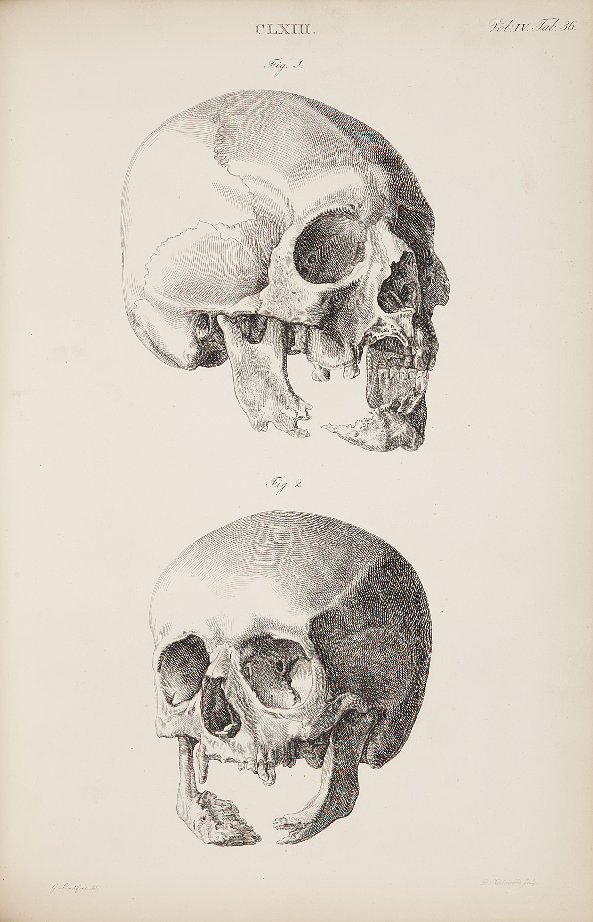Museum anatomicum Academiae Lugduno-Batavae. Leiden: S. & J. Luchtmans, 1793-1835. 4 volumes, folio, 208 engraved plates, half-title in volume 3, contemporary calf, volume 4 contemporary half calf, RCSI library stamp on titles, occasional spotting, a little dust-soiling, final leaf volume 3 frayed, bindings very worn with covers detached, volume 4 lacks lower board