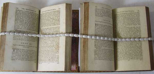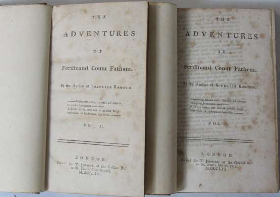 The adventures of Ferdinand Count Fathom. London: T. Johnson, 1753. First edition, 2 volumes, 12mo., later calf, spines decorated gilt in compartments, a.e.g., by Wood, titlepages and some other leaves slightly foxed