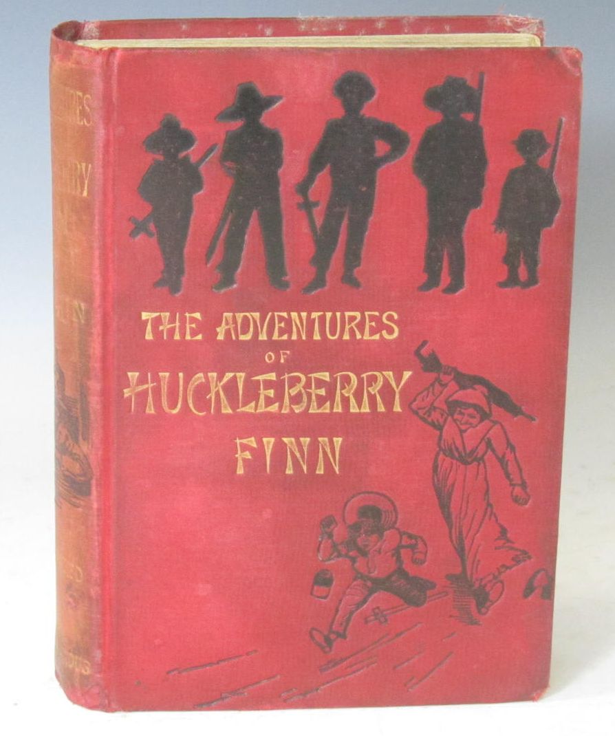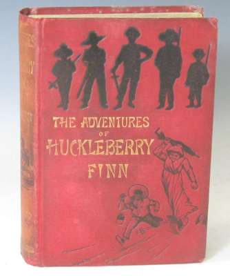 The adventures of Huckleberry Finn. London: Chatto & Windus, 1884. First edition, frontispiece, illustrations, original red pictorial cloth, lettered in gilt, 32pp. publisher's catalogue dated October 1884 at end, some spotting and soiling, recased with slight loss at head and tail of spine