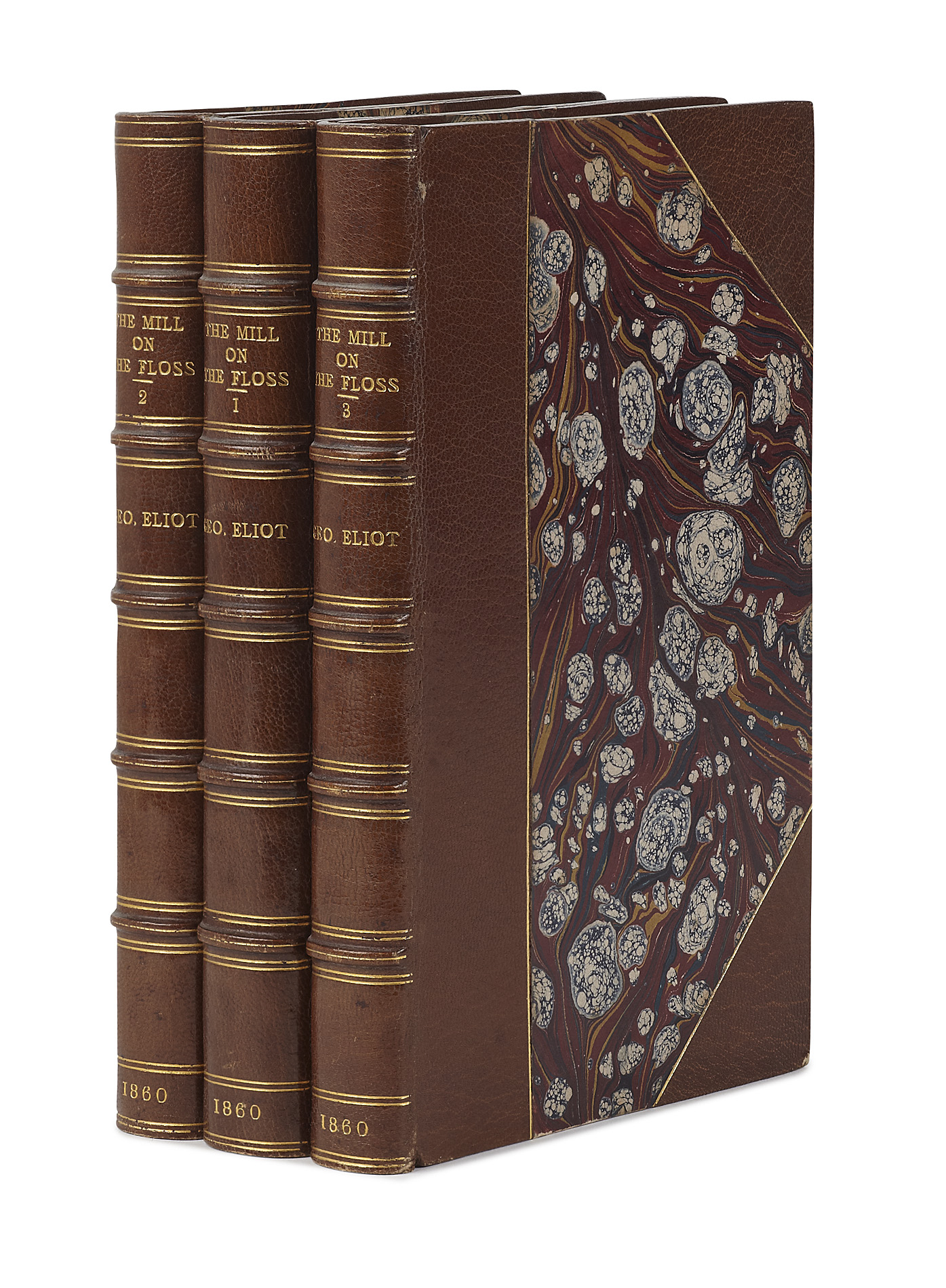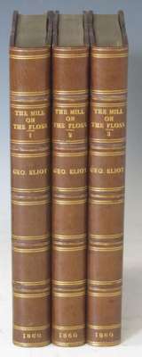 The mill on the Floss. Edinburgh & London: W. Blackwood & Sons, 1860. First edition, 3 volumes, 8vo, half-titles, late nineteenth century brown half morocco, t.e.g., spines gilt, a few leaves lightly spotted