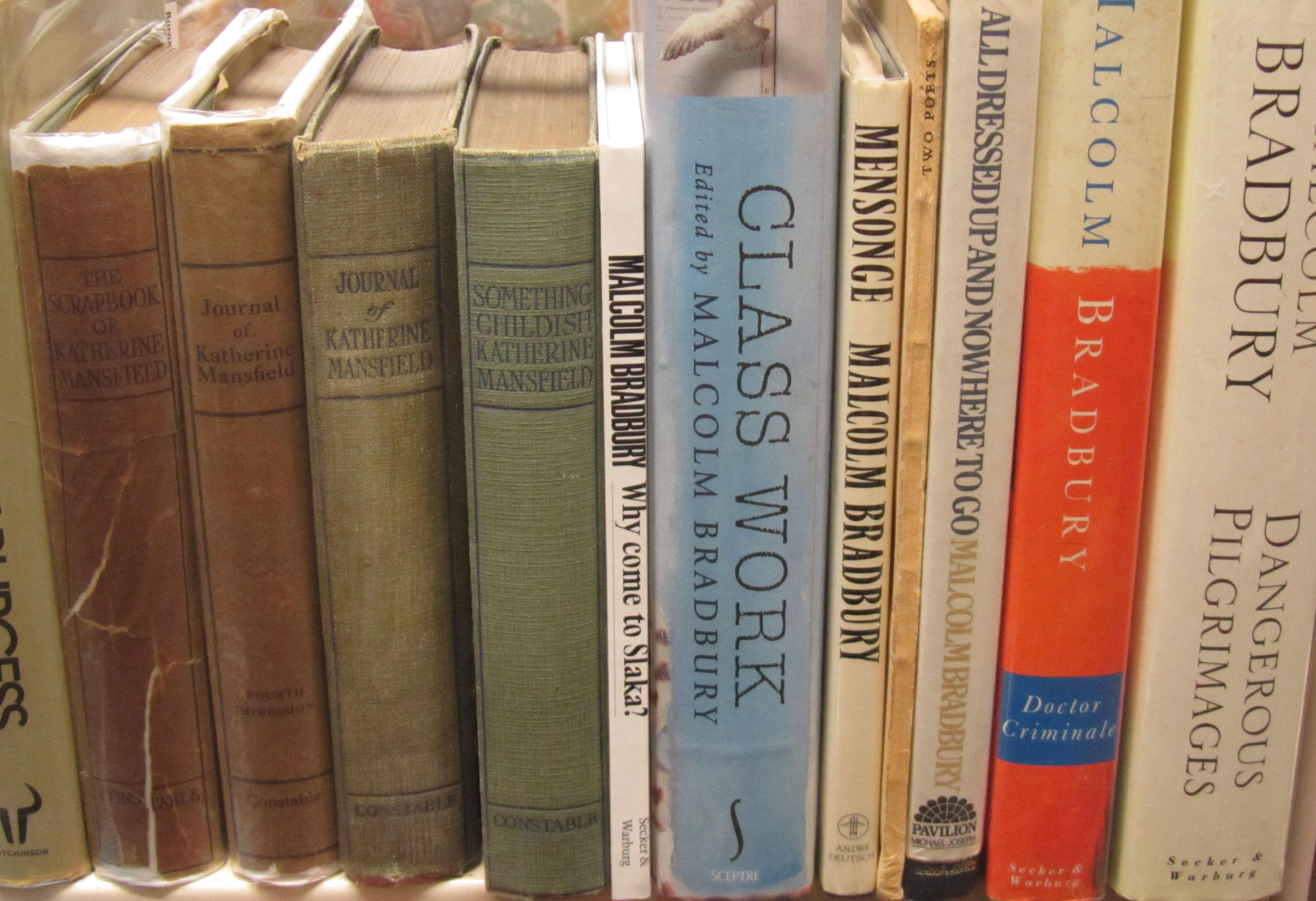 Tinniswood, Peter I didn't know you cared. London: Hodder and Stoughton, 1973. First edition, dustwrapper not price-clipped; Hansford Johnson, Pamela The unspeakable Skipton. London: Macmillan & Co., 1959. First edition, dustwrapper not price-clipped; Keneally, Thomas Schindler's ark. London: Hodder and Stoughton, 1982. First edition, price-clipped dustwrapper; Lavin, Mary Selected stories. New York: Macmillan, 1959. Price-clipped dustwrapper; Burgess, Anthony 1985. London: Hutchinson & Co., 1978. First edition, dustwrapper not price-clipped; Mansfield, Katherine Journal. London: Constable & Co., 1927. Fourth printing, price-clipped and worn dustwrappert; Bradbury, Malcolm All dressed up and nowhere to go. London: Pavilion, 1982. Dustwrapper not price-clipped; Wain, John Strike the father dead. London: Macmillan & Co., 1962. Dustwrapper not price-clipped; Shepard, Sam Five plays. London: Faber and Faber, 1967. Dustwrapper not price-clipped, library stamps; Forster, E.M. Abinger harvest. London: Edward Arnold & Co., 1936. First edition, lacks dustwrapper; West, Nathaniel The day of the locust. London: Grey Walls Press, 1951. First British edition, dustwrapper not price-clipped; Haddon, Mark The curious incident of the dog in the night-time. London: Jonathan Cape, 2003. First edition, dustwrapper not price-clipped; Sinclair, Andrew The breaking of Bumbo. London: Faber and Faber, 1959. First edition, dustwrapper not price-clipped; Wilson, Sandy The Boy Friend. London: Andre Deutsch, 1955. First edition?, dustwrapper not price-clipped; Lerner, Alan Jay - (Shaw, Bernard) My fair lady. London: Max Reinhardt/Constable, 1958. First British edition, dustwrapper not price-clipped; Rowson, Martin Gulliver's travels. London: Atlantic books, 2012. First edition, signed by Rowson, dustwrapper, with sketch in black and red ink attributed to Rowson, and another work by Rowson, signed and dedicated to Bruce Ritchie, wishing him a speedy recovery from illness, with accompanying postcard from Rowson; and 5 others by Tinniswood, 14 others by Hansford Johnson, 7 others by Keneally, 4 others by Lavin, 18 others by Burgess, 3 others by Mansfield, 9 others by Bradbury and a quantity of others, sold not subject to return