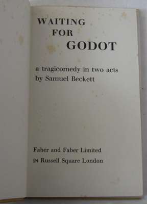 Waiting for Godot. London: Faber & Faber, 1955. First British edition, 8vo, original yellow cloth, dustwrapper, publisher's note loose but present, some slight foxing, spine a little faded, dustwrapper slightly rubbed and soiled