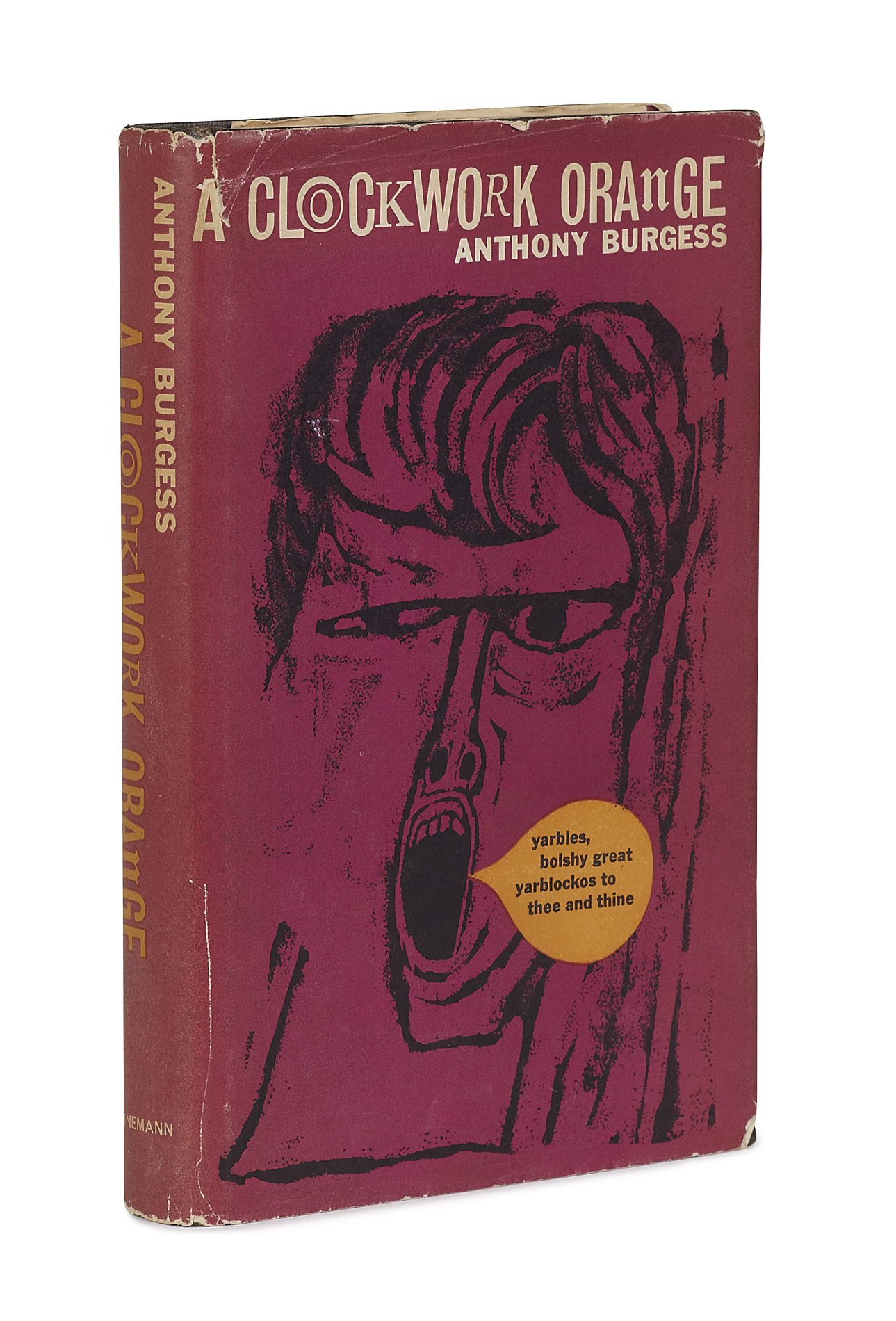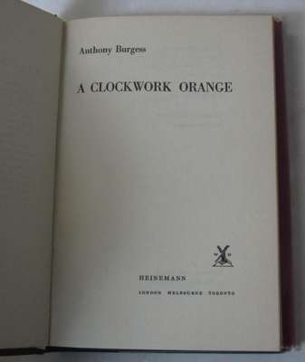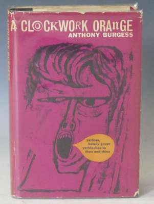 A clockwork orange. London: William Heinemann, 1962. First edition, 8vo, original black cloth boards, dustwrapper in 1st state with 16s/NEt at lower right hand corner of the front flap, not price-clipped but spine faded with some chips at ends of spine and around edges