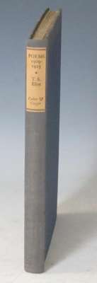 Note: Early printing of T.S. Eliot's first collection of poems, signed by him on the titlepage. This collection, first published in 1925, includes some of Eliot's finest work: The Love Song of J. Alfred Prufrock, The Hollw Men, and The Wasteland. Gallup A8