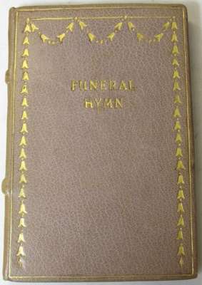 Hymn on the death of President Lincoln. London: Edward Arnold, 1900. 8vo., hand coloured frontispiece and capitals by C. R. Ashbee, contemporary lilac coloured morocco, boards decorated with gilt garland of lilies, marbled endpapers, no. 31 of 125 on vellum