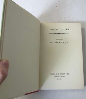 Lord of the flies. London: Faber and Faber Ltd, 1954. First edition, 8vo., publisher's cloth, pictorial dustwrappers, extremities of the wrappers chipped with small loss at head of spine, partial fading of the lower wrapper, inside fold of the lower wrapper stamped "23 Sep 1954", slightly skewed in binding