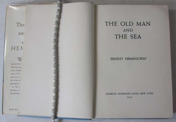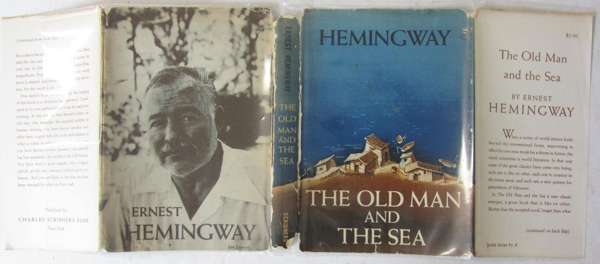 The old man and the sea. New York: Charles Scribner's Sons, 1952. First edition, 8vo, original blue blindstamped cloth, dustwrapper appears to be first issue, as there is no mention of Hemingway's Nobel prize, however the production symbols are lacking, some fading and spotting to cloth, dustwrapper not price-clipped but a little soiled and rubbed with some chipping and slight loss to spine